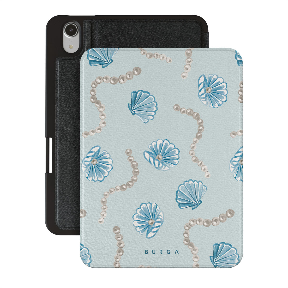 Kenmerken van dit design: parels, schelpen, lichtblauwe achtergrond, oceaan elementen.