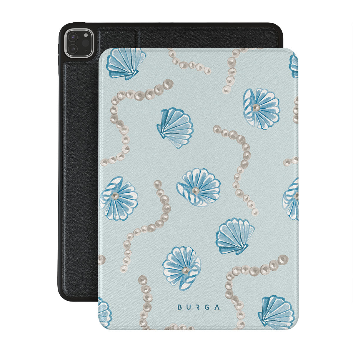 Kenmerken van dit design: parels, schelpen, lichtblauwe achtergrond, oceaan elementen.