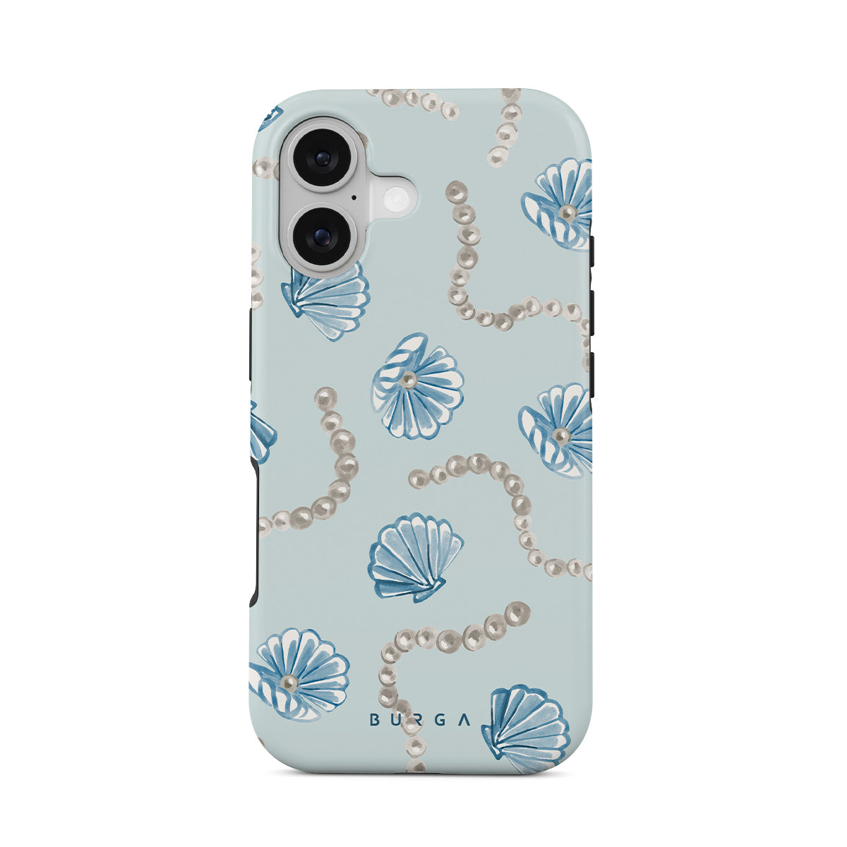 Kenmerken van dit design: parels, schelpen, lichtblauwe achtergrond, oceaan elementen.