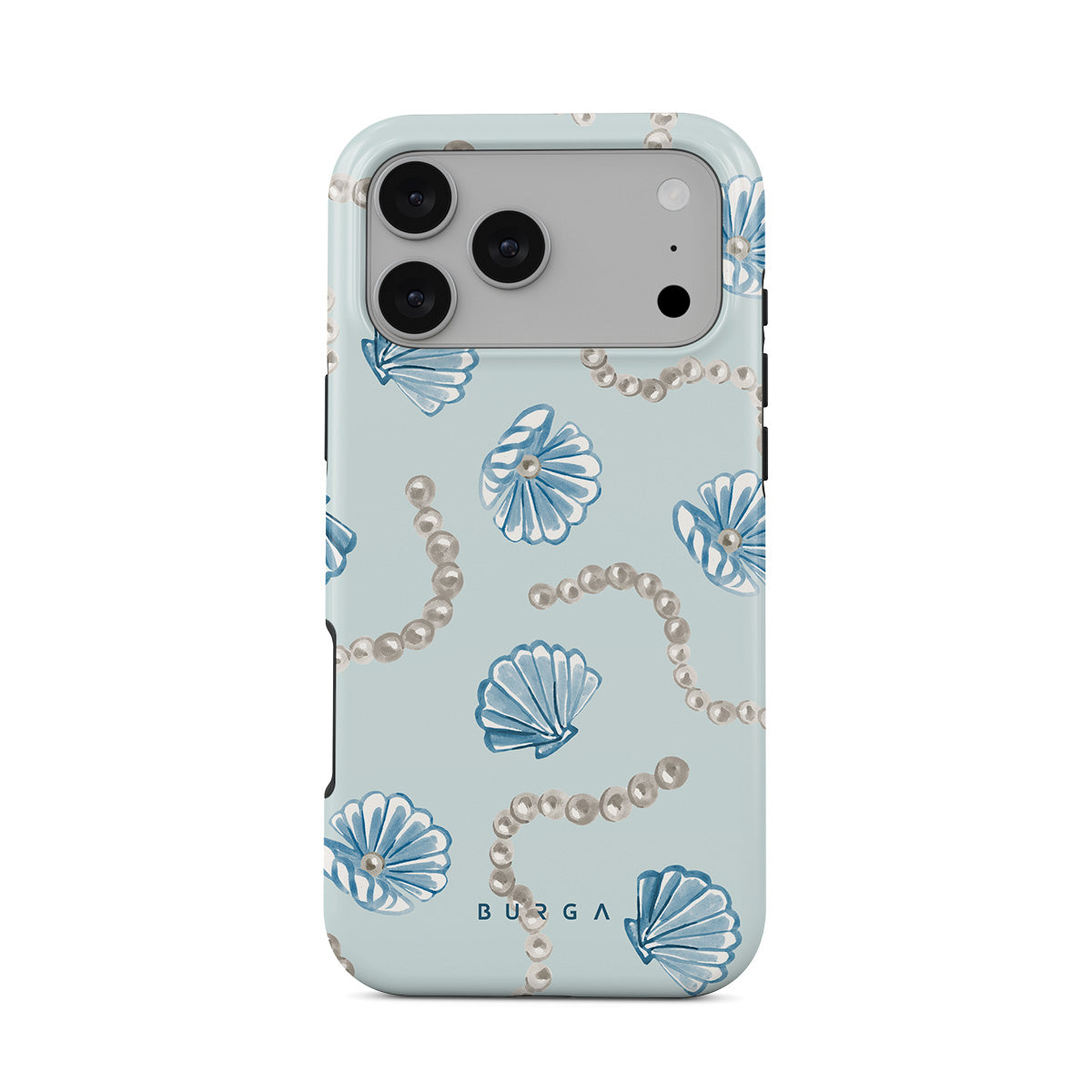 Kenmerken van dit design: parels, schelpen, lichtblauwe achtergrond, oceaan elementen.