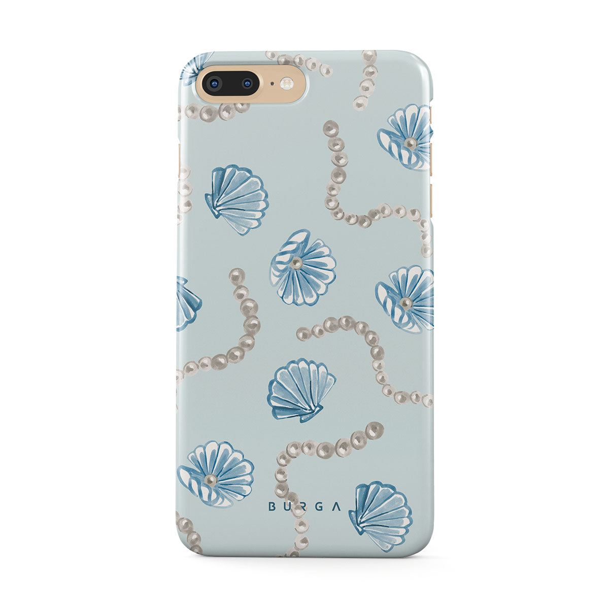 Kenmerken van dit design: parels, schelpen, lichtblauwe achtergrond, oceaan elementen.