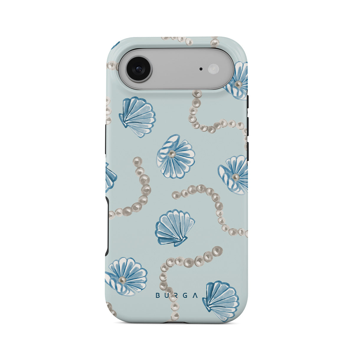 Kenmerken van dit design: parels, schelpen, lichtblauwe achtergrond, oceaan elementen.