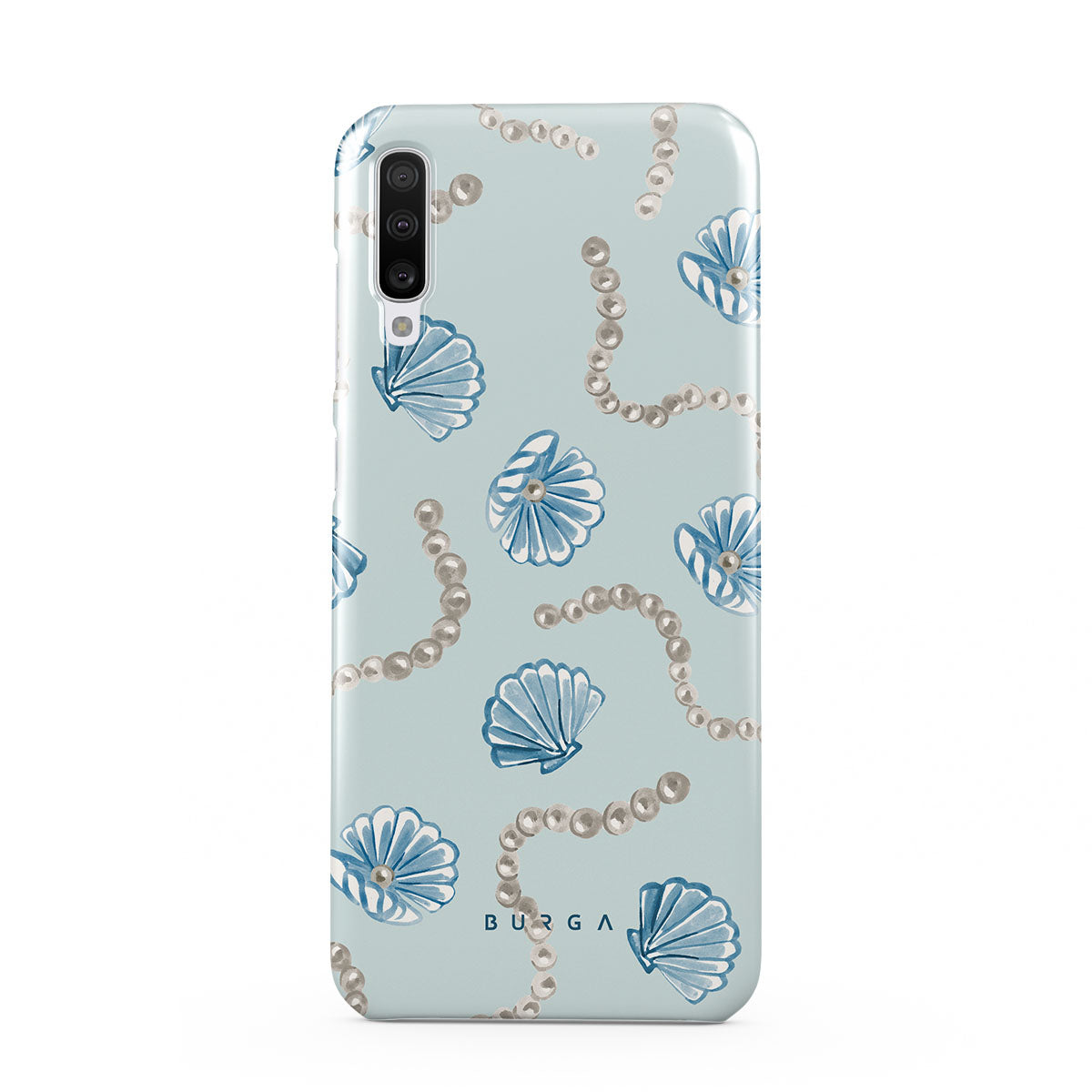 Kenmerken van dit design: parels, schelpen, lichtblauwe achtergrond, oceaan elementen.
