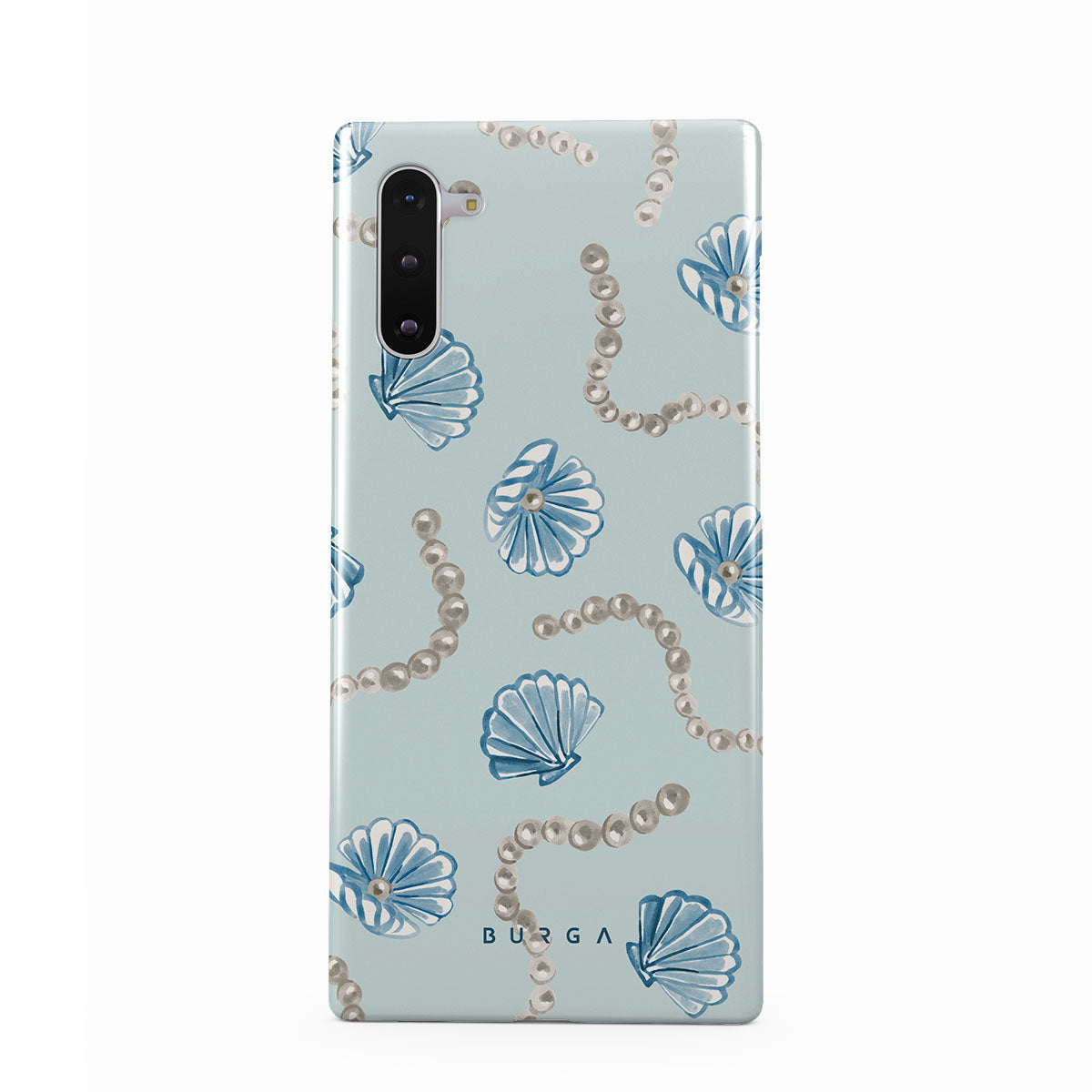 Kenmerken van dit design: parels, schelpen, lichtblauwe achtergrond, oceaan elementen.