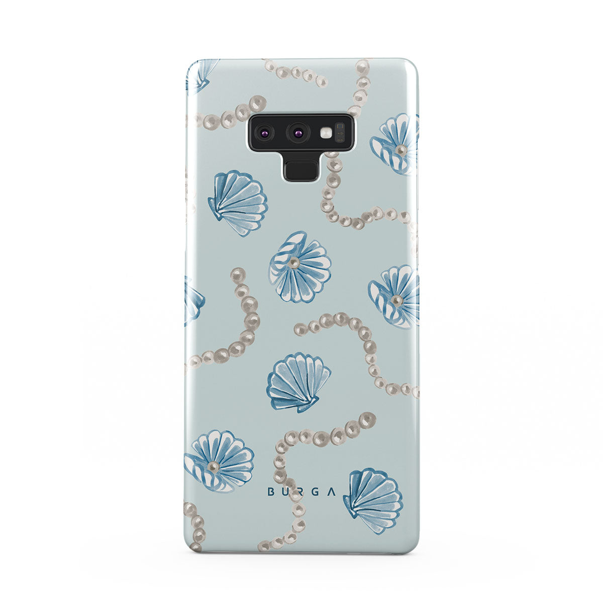 Kenmerken van dit design: parels, schelpen, lichtblauwe achtergrond, oceaan elementen.