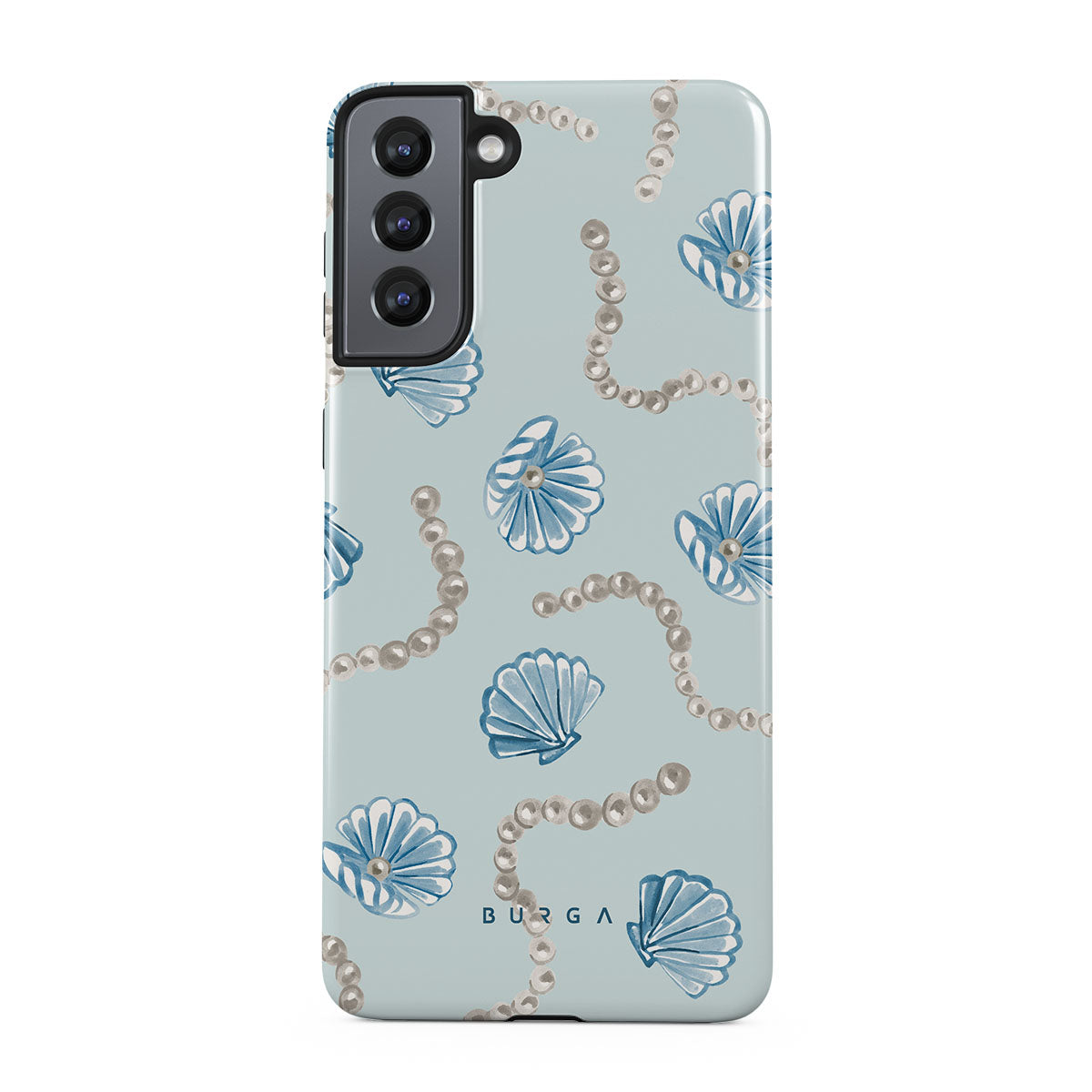 Kenmerken van dit design: parels, schelpen, lichtblauwe achtergrond, oceaan elementen.