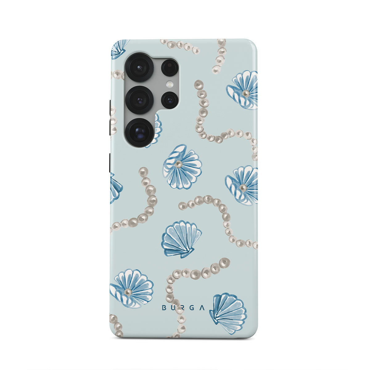 Kenmerken van dit design: parels, schelpen, lichtblauwe achtergrond, oceaan elementen.