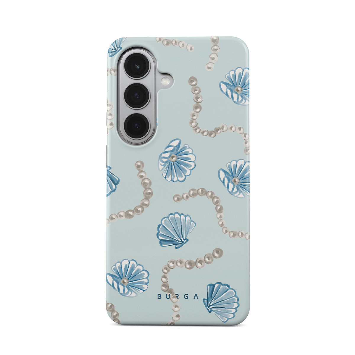 Kenmerken van dit design: parels, schelpen, lichtblauwe achtergrond, oceaan elementen.