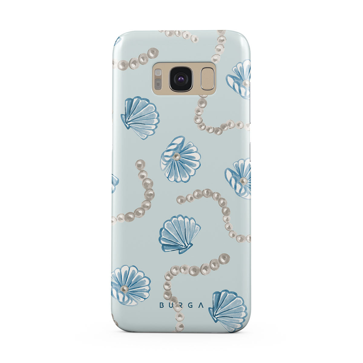Kenmerken van dit design: parels, schelpen, lichtblauwe achtergrond, oceaan elementen.