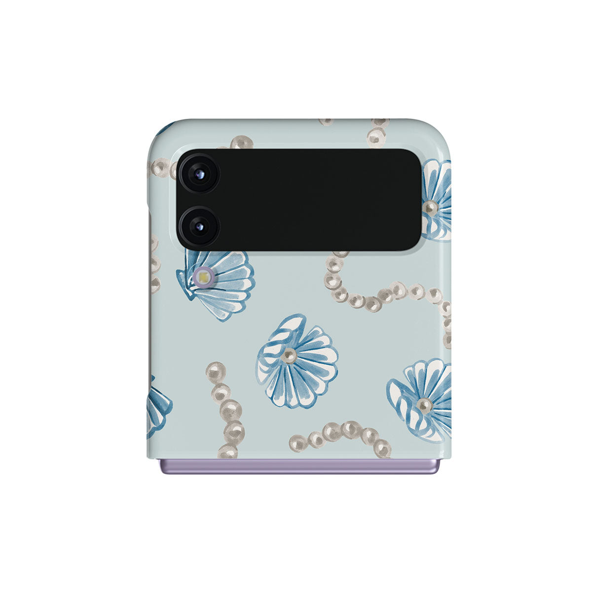 Kenmerken van dit design: parels, schelpen, lichtblauwe achtergrond, oceaan elementen.