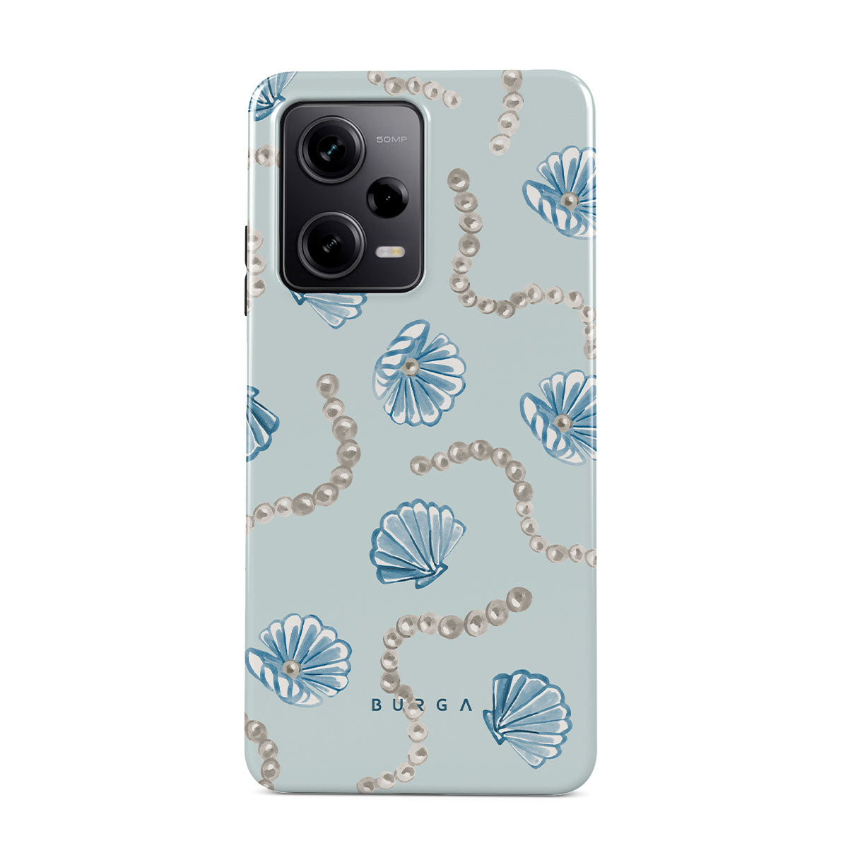Kenmerken van dit design: parels, schelpen, lichtblauwe achtergrond, oceaan elementen.