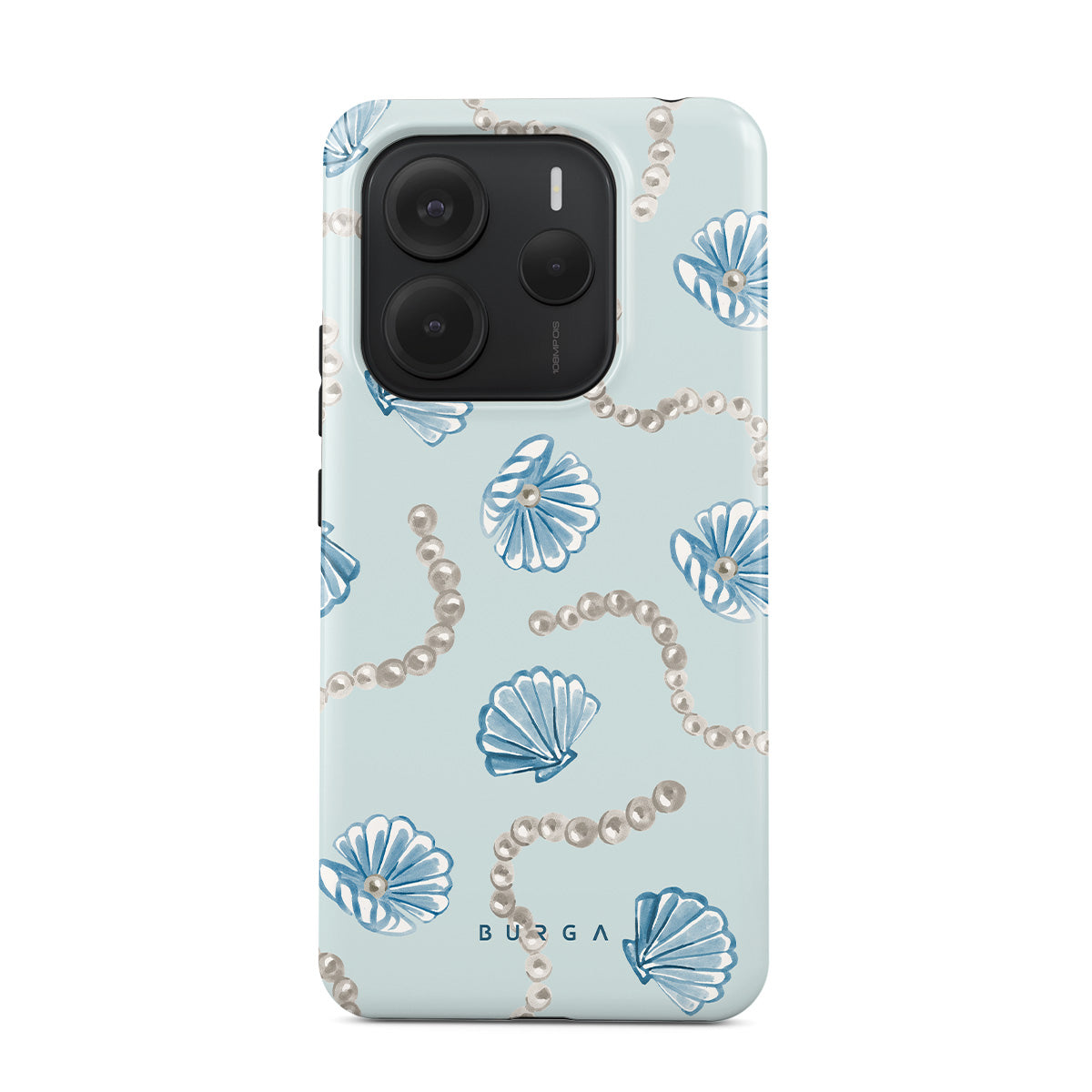 Kenmerken van dit design: parels, schelpen, lichtblauwe achtergrond, oceaan elementen.
