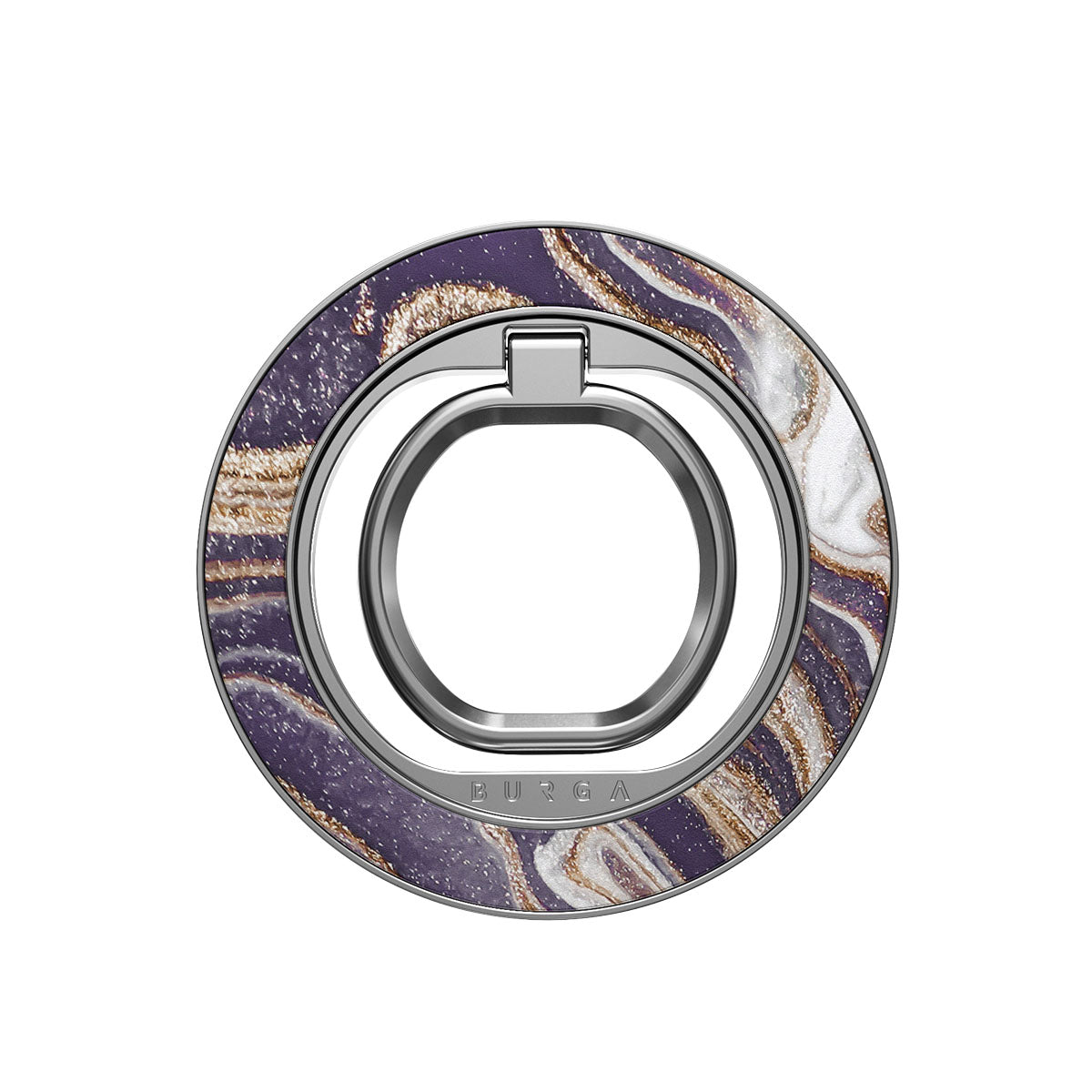 Deze magnetische ringhouder klikt vast met een bevredigende klik, dus geen lijm, geen gedoe. Gebruik ‘m als grip om met één hand te scrollen, als standaard voor handsfree series en films kijken, of als stijlvolle accessoire die perfect bij je BURGA-hoesje past.