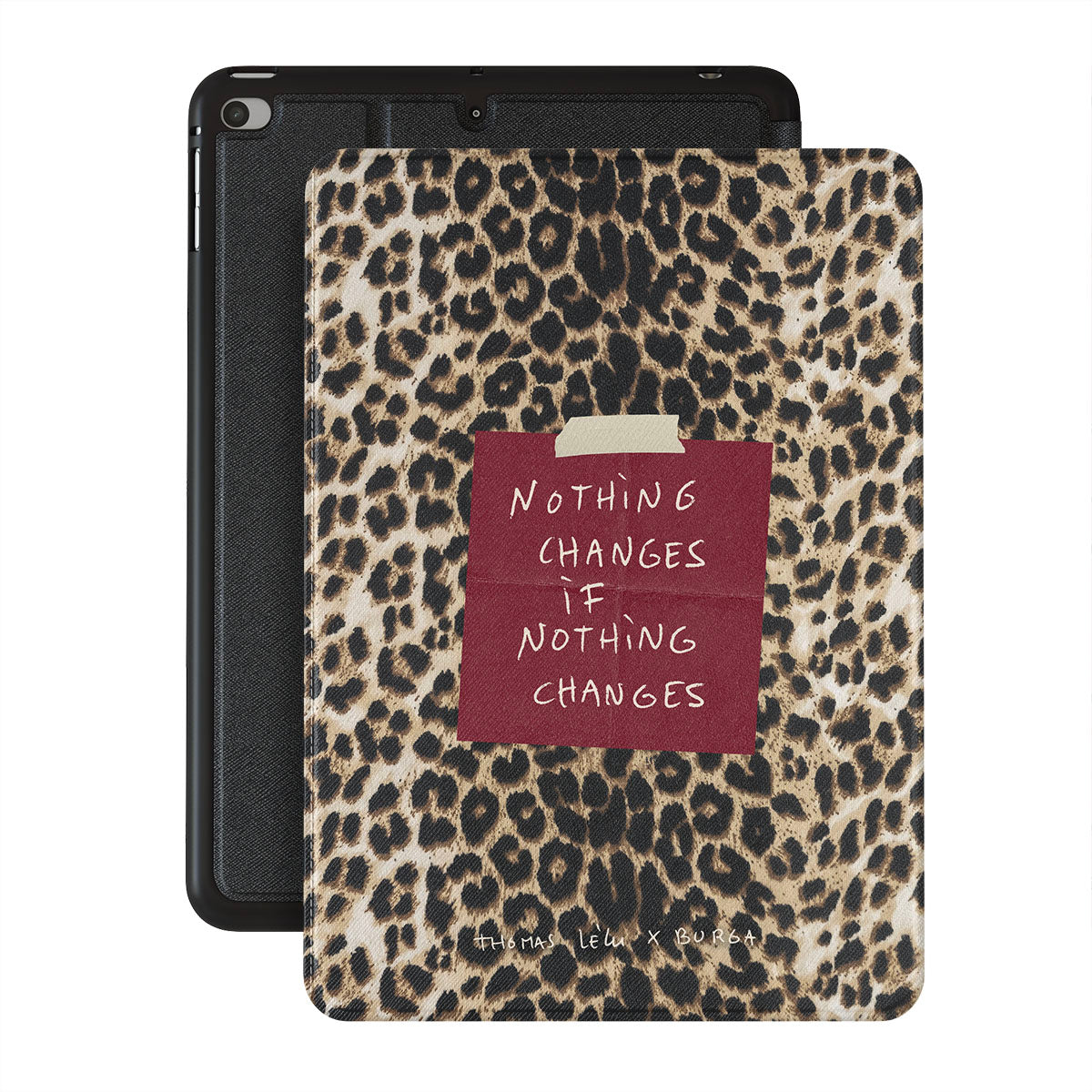 Kenmerken van dit design: cursieve tekst, citaat, rood memoblaadje, dierenprint