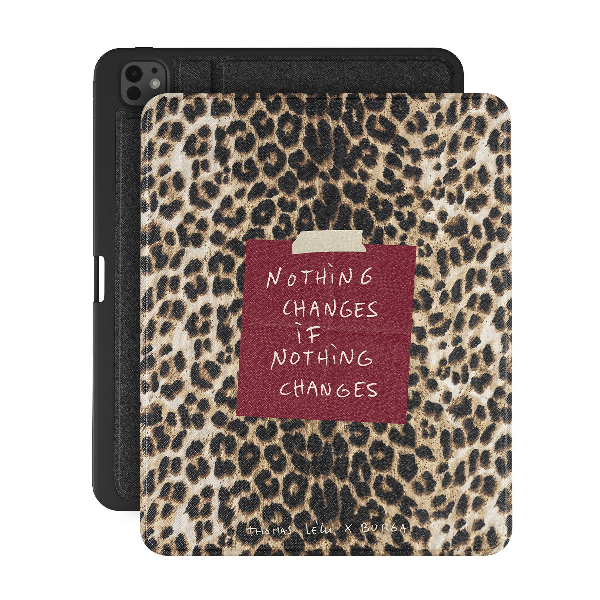 Kenmerken van dit design: cursieve tekst, citaat, rood memoblaadje, dierenprint
