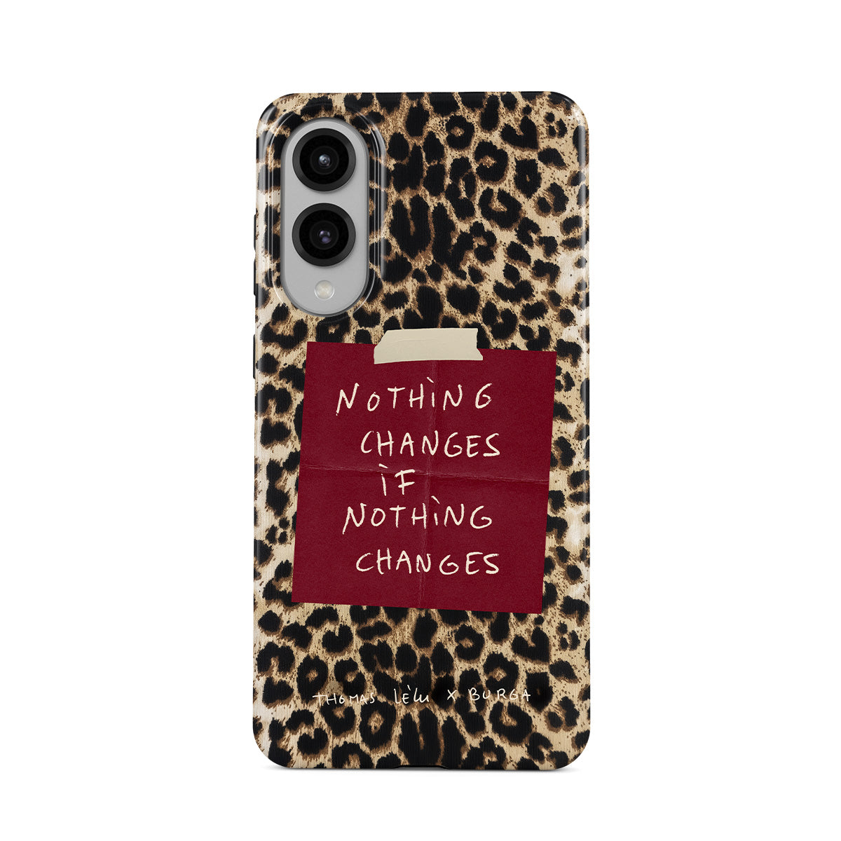 Kenmerken van dit design: cursieve tekst, citaat, rood memoblaadje, dierenprint