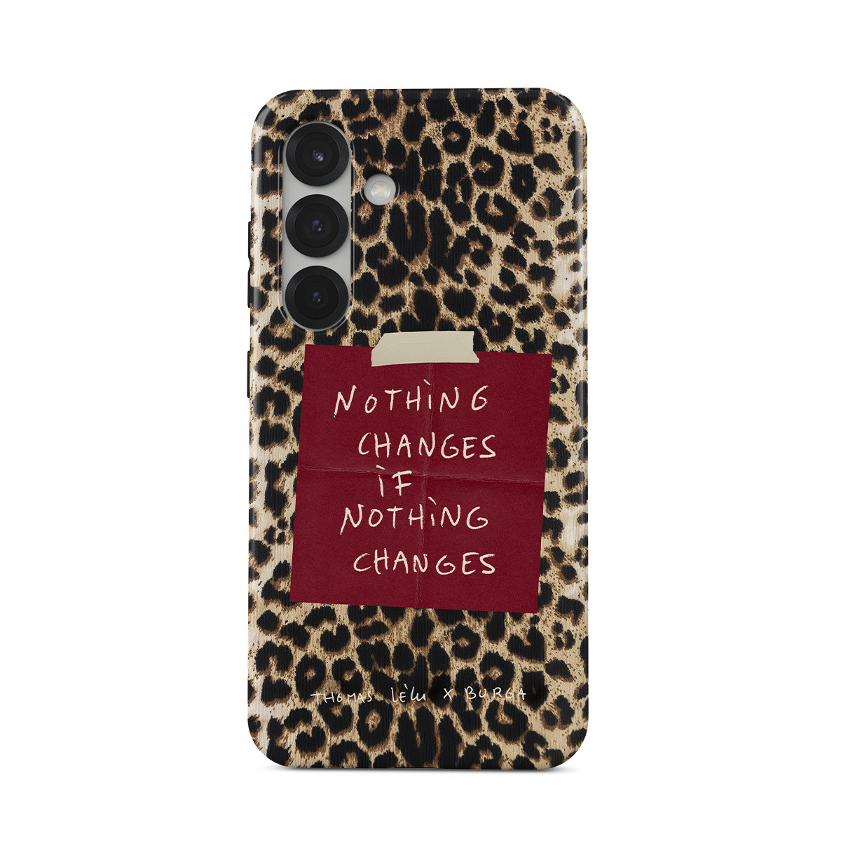 Kenmerken van dit design: cursieve tekst, citaat, rood memoblaadje, dierenprint