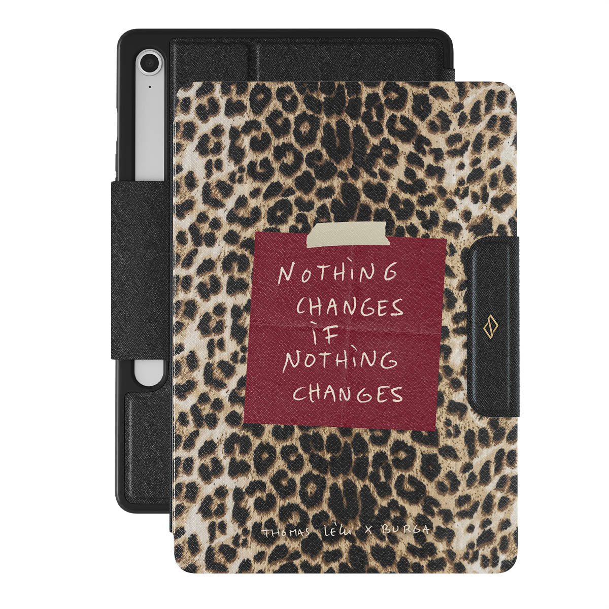 Kenmerken van dit design: cursieve tekst, citaat, rood memoblaadje, dierenprint