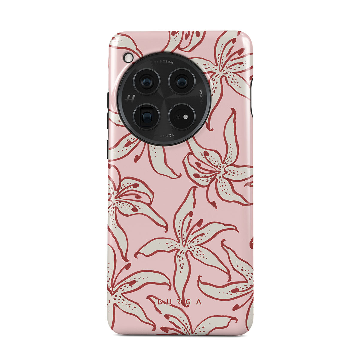 Kenmerken van dit design: witte lelies, roze achtergrond.