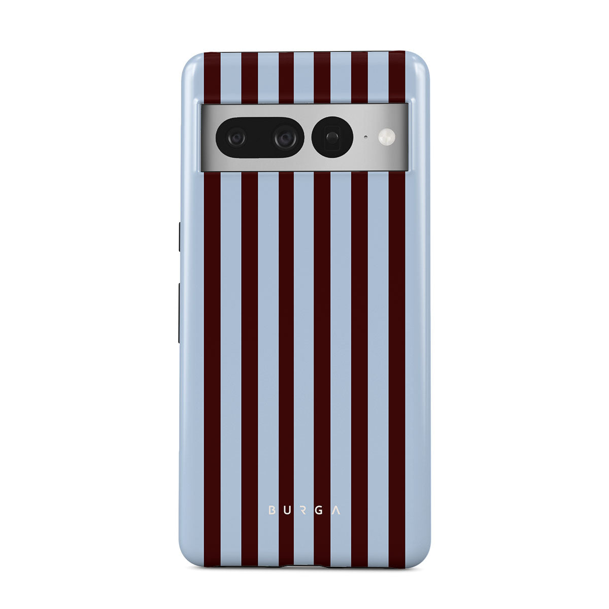 Kenmerken van dit design: verticale strepen in bruin en babyblauw.
