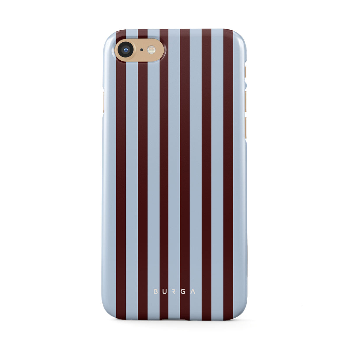 Kenmerken van dit design: verticale strepen in bruin en babyblauw.