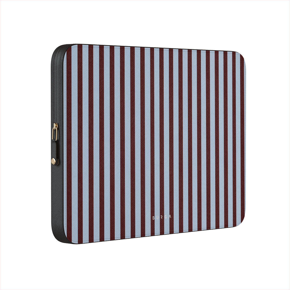 Kenmerken van dit design: verticale strepen in bruin en babyblauw.