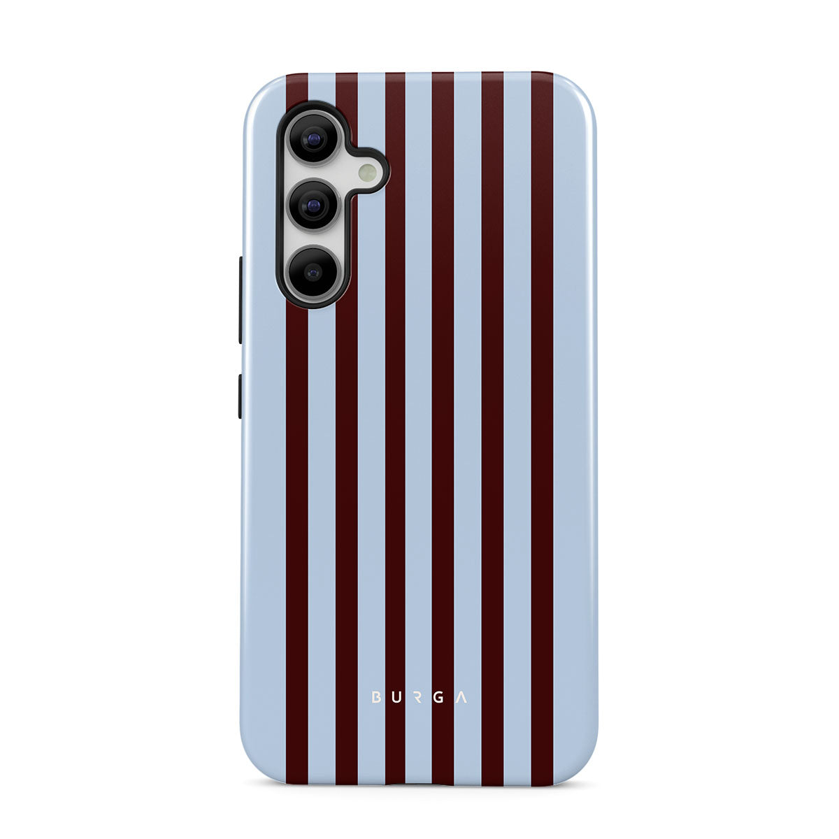 Kenmerken van dit design: verticale strepen in bruin en babyblauw.