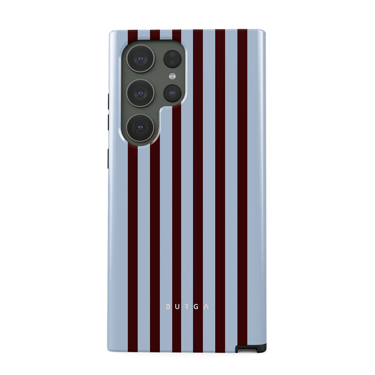 Kenmerken van dit design: verticale strepen in bruin en babyblauw.