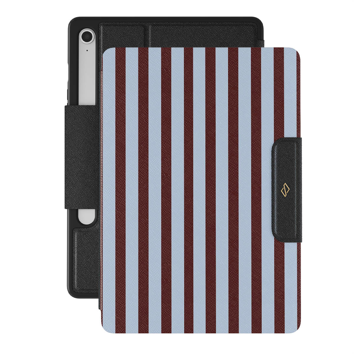 Kenmerken van dit design: verticale strepen in bruin en babyblauw.