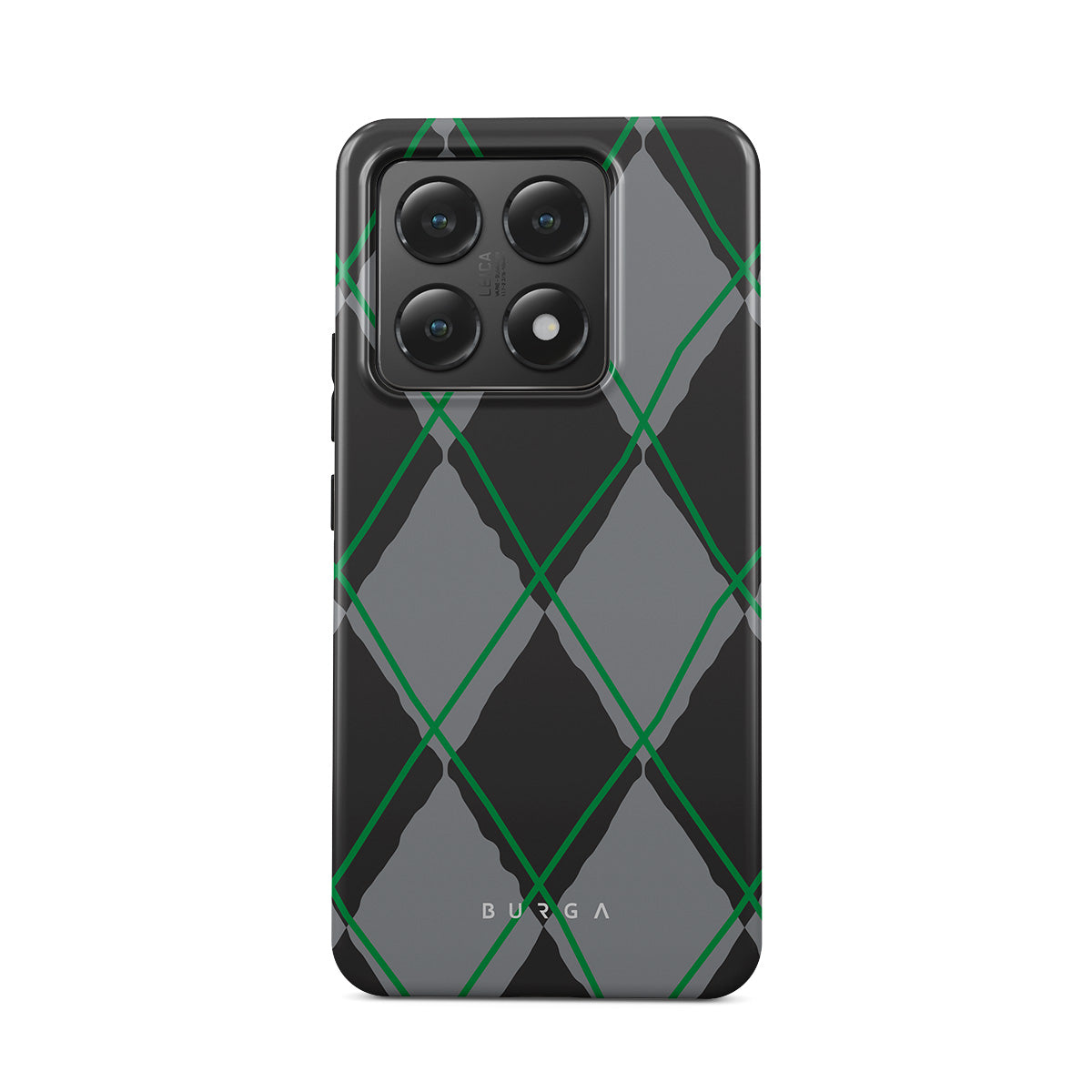 Kenmerken van dit design: ruitpatroon, groen en grijs, klassiek patroon, geometrisch patroon