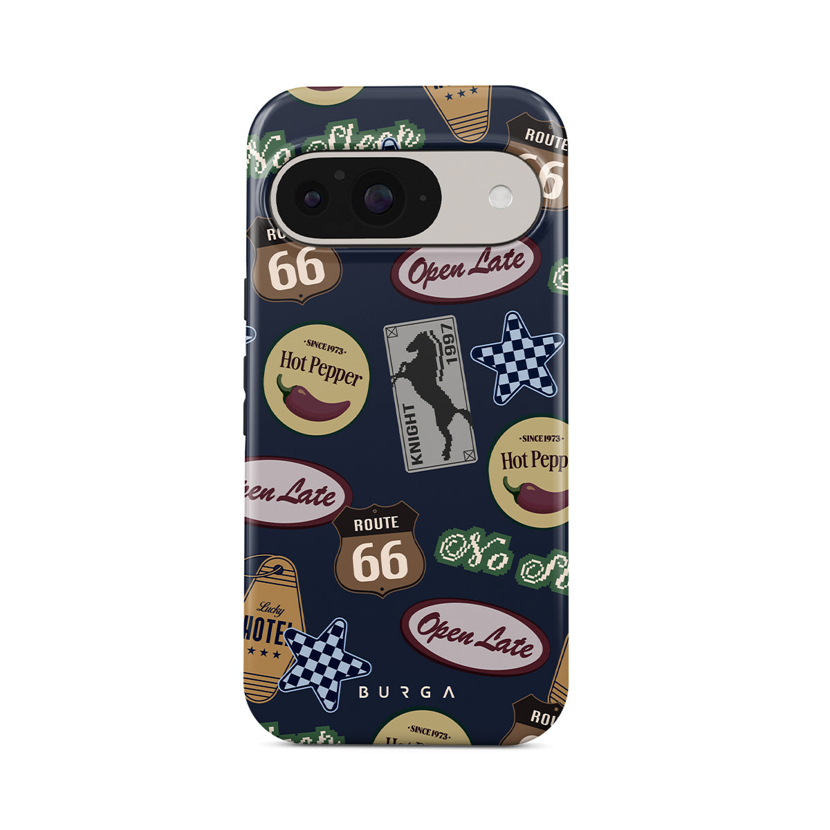Kenmerken van dit design: vintage borden, retro patroon, roadtripthema