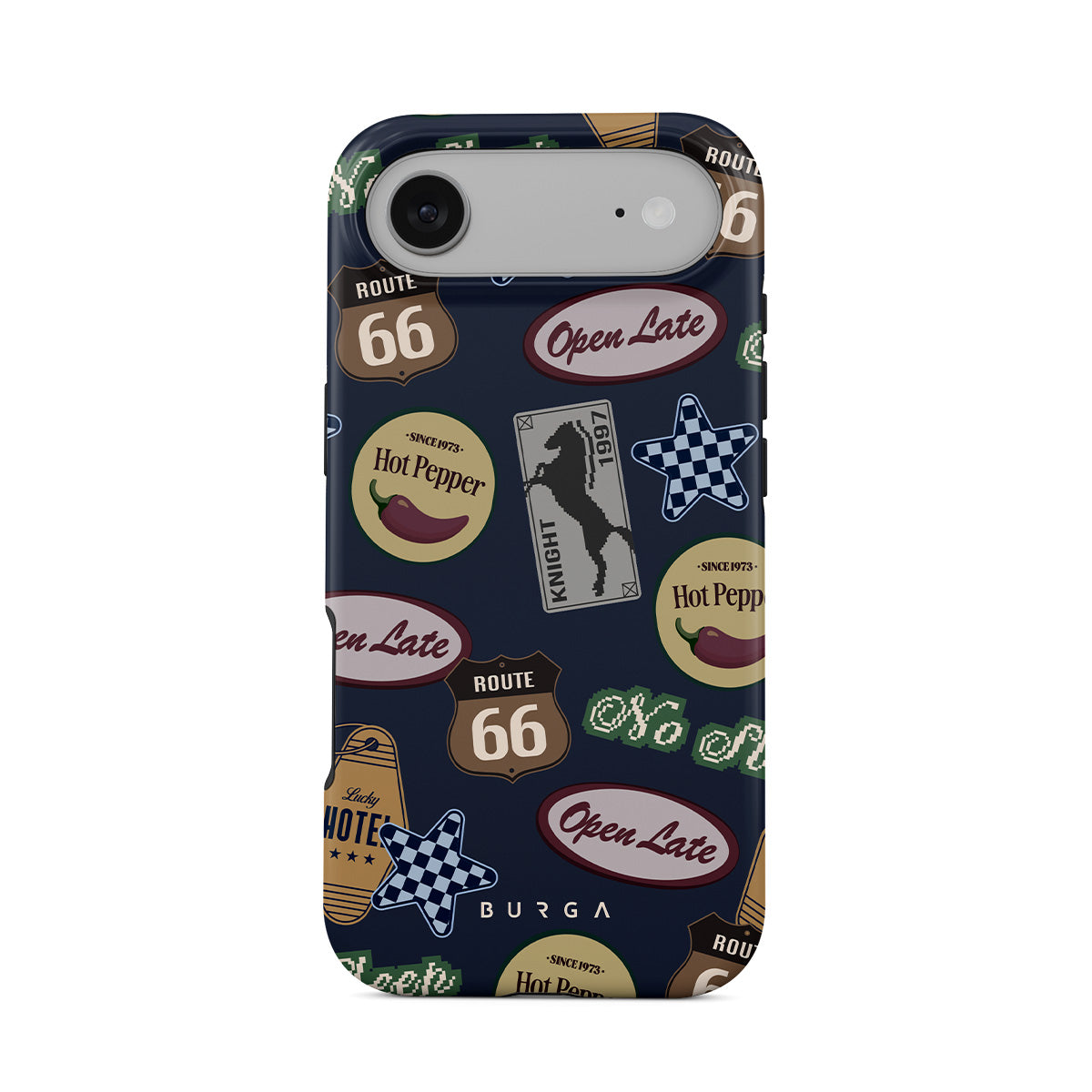 Kenmerken van dit design: vintage borden, retro patroon, roadtripthema