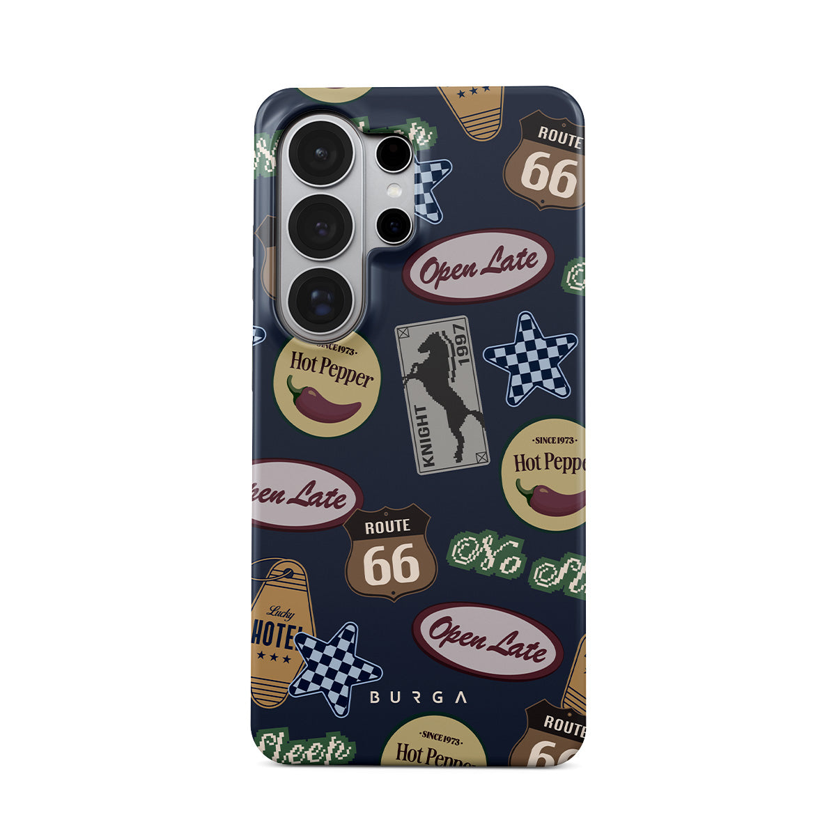 Kenmerken van dit design: vintage borden, retro patroon, roadtripthema