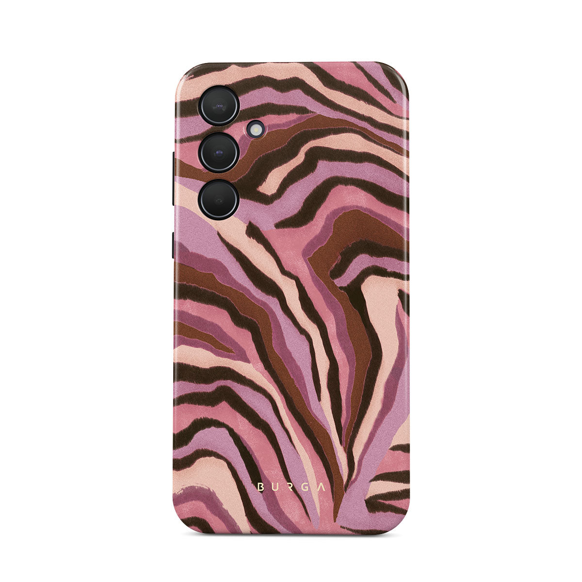 Kenmerken van dit design: zebra strepen, roze en bruin, dierenprint.