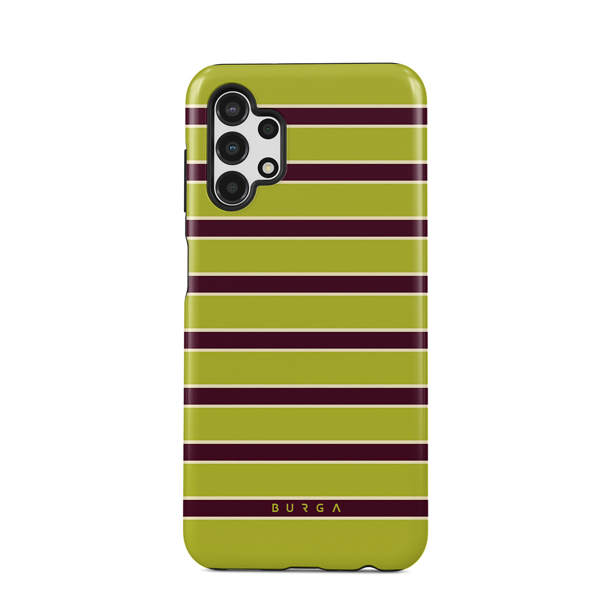 Kenmerken van dit design: dikke horizontale strepen in limoengroen en bordeaux.