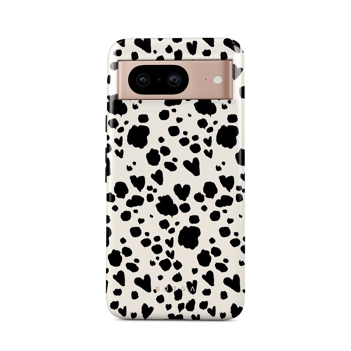 Kenmerken van dit design: een zwart-wit Dalmatiërpatroon.