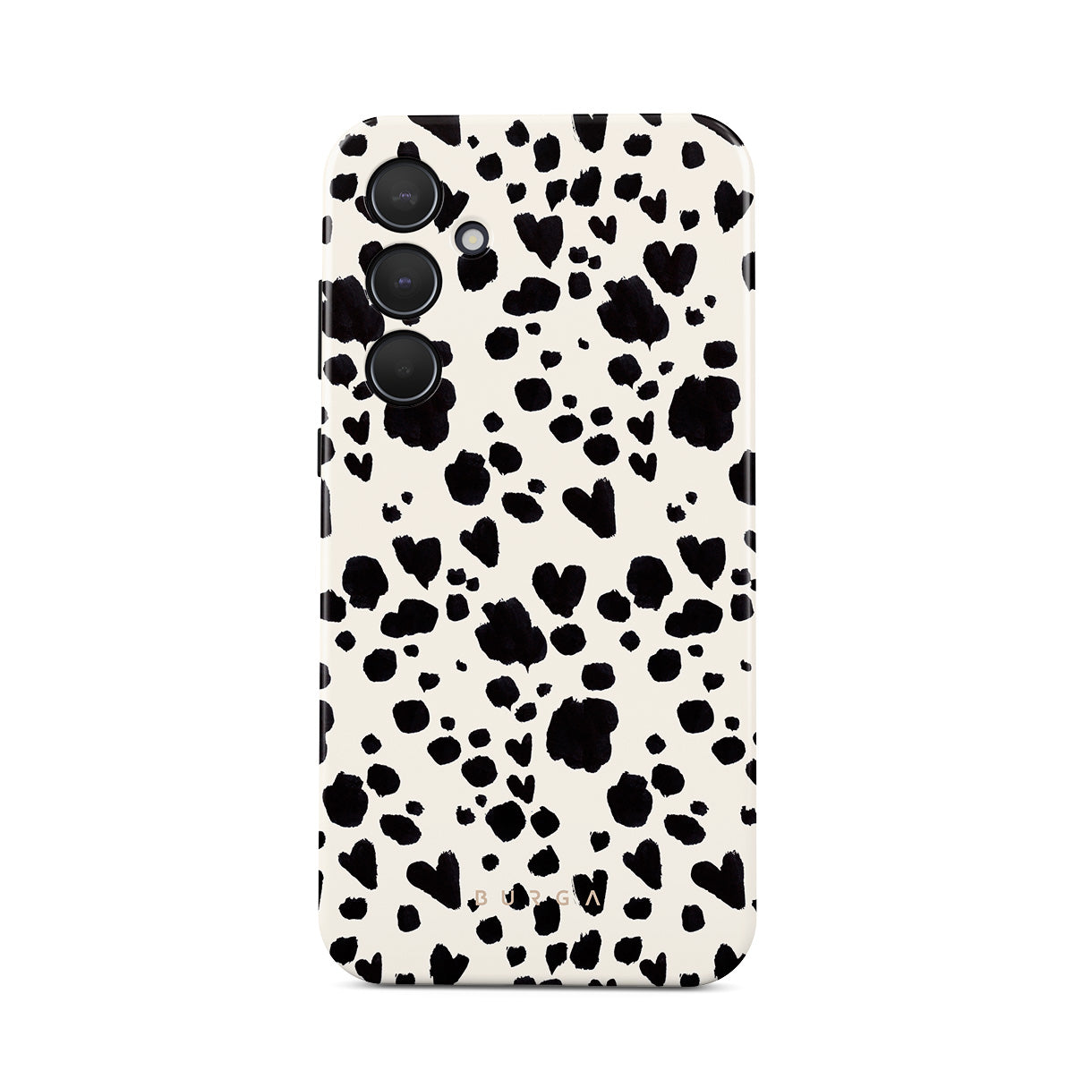 Kenmerken van dit design: een zwart-wit Dalmatiërpatroon.