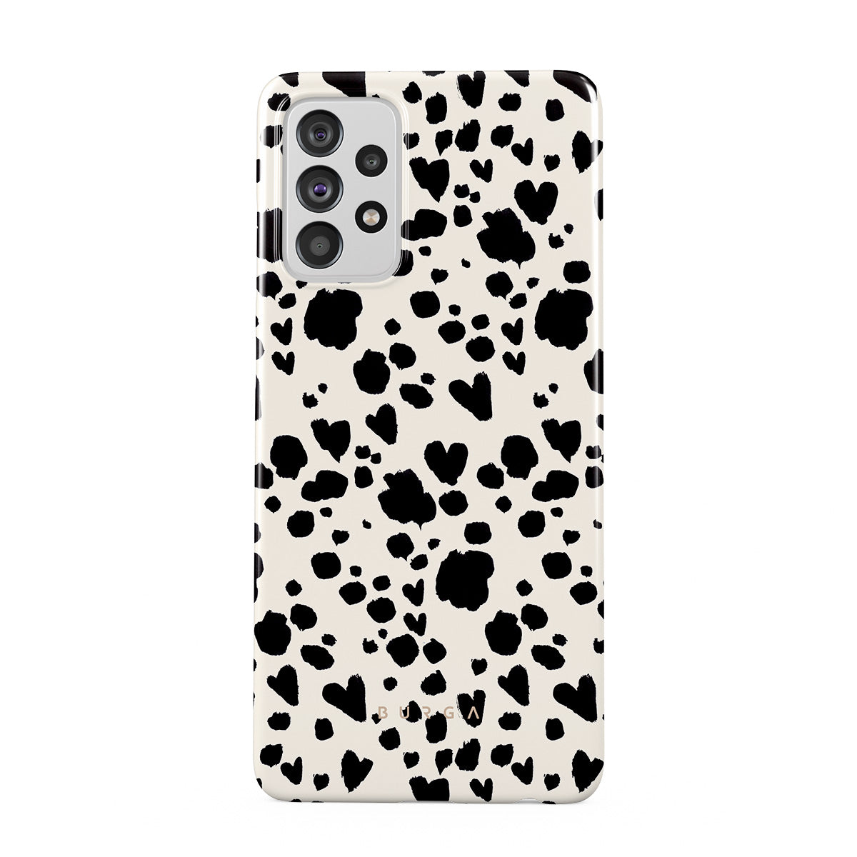 Kenmerken van dit design: een zwart-wit Dalmatiërpatroon.