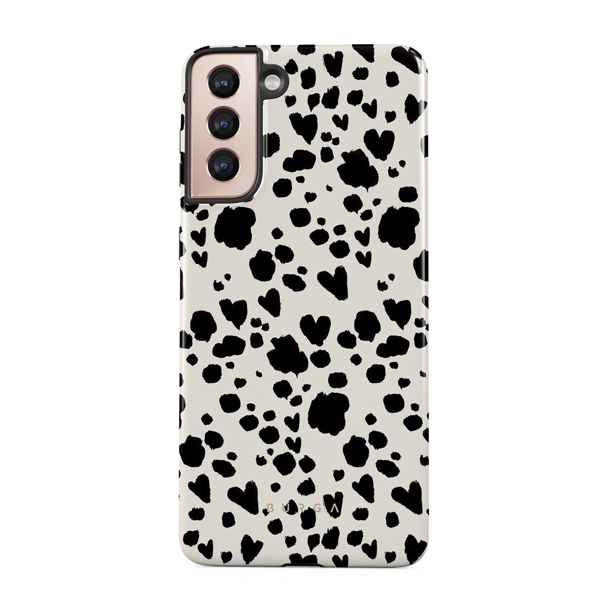 Kenmerken van dit design: een zwart-wit Dalmatiërpatroon.