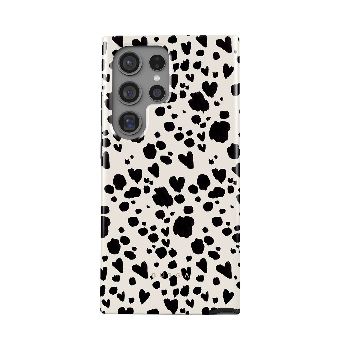 Kenmerken van dit design: een zwart-wit Dalmatiërpatroon.