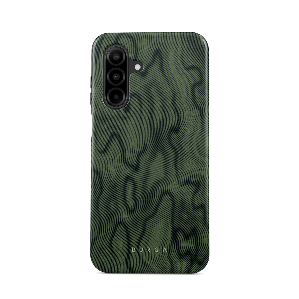 Kenmerken van dit design: donkergroen, golvende lijnen, vloeiend patroon, abstract patroon