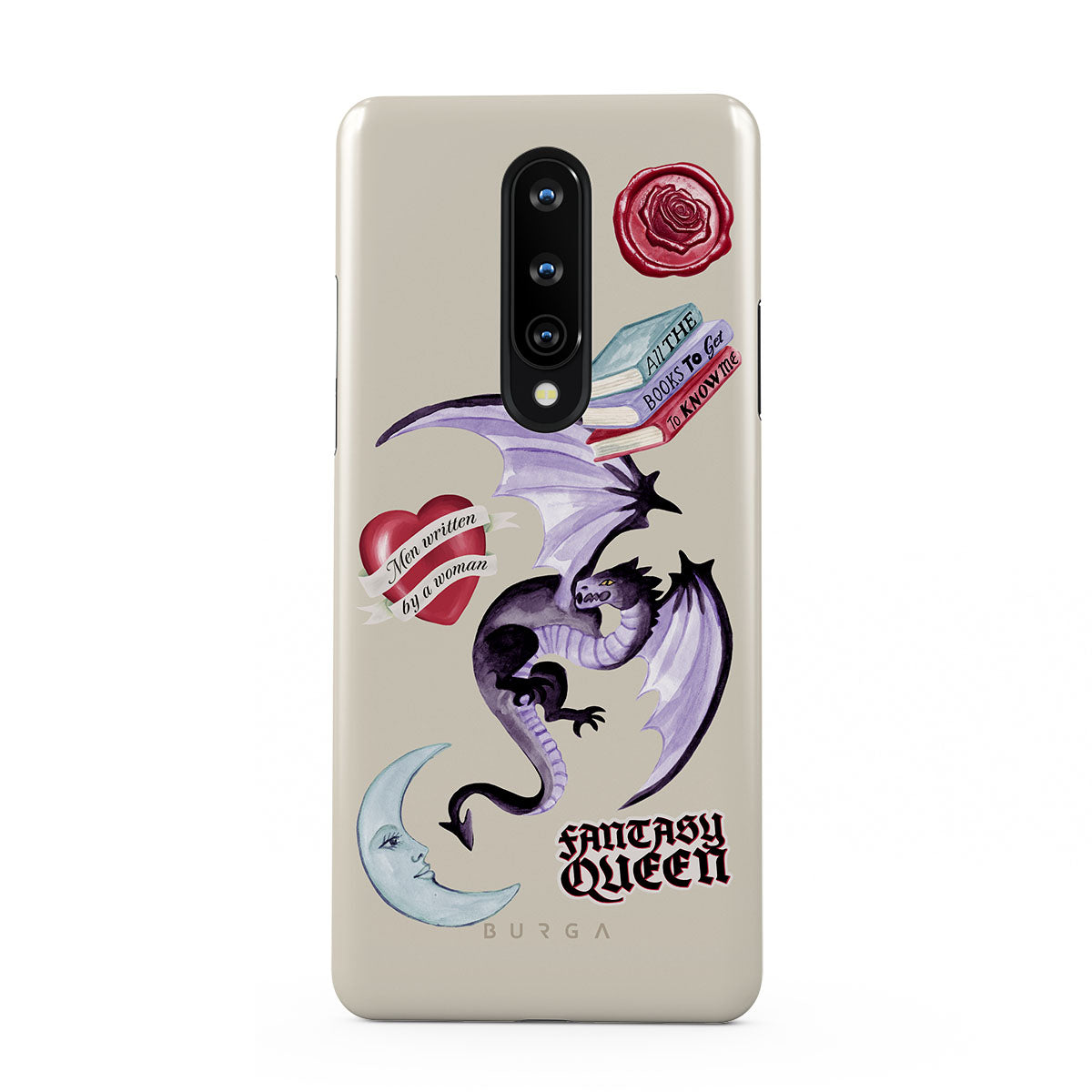 Kenmerken van dit design: paarse draak, sticker "Fantasy Queen", halve maan, paarse lakzegel, hart met boodschap, boeken.