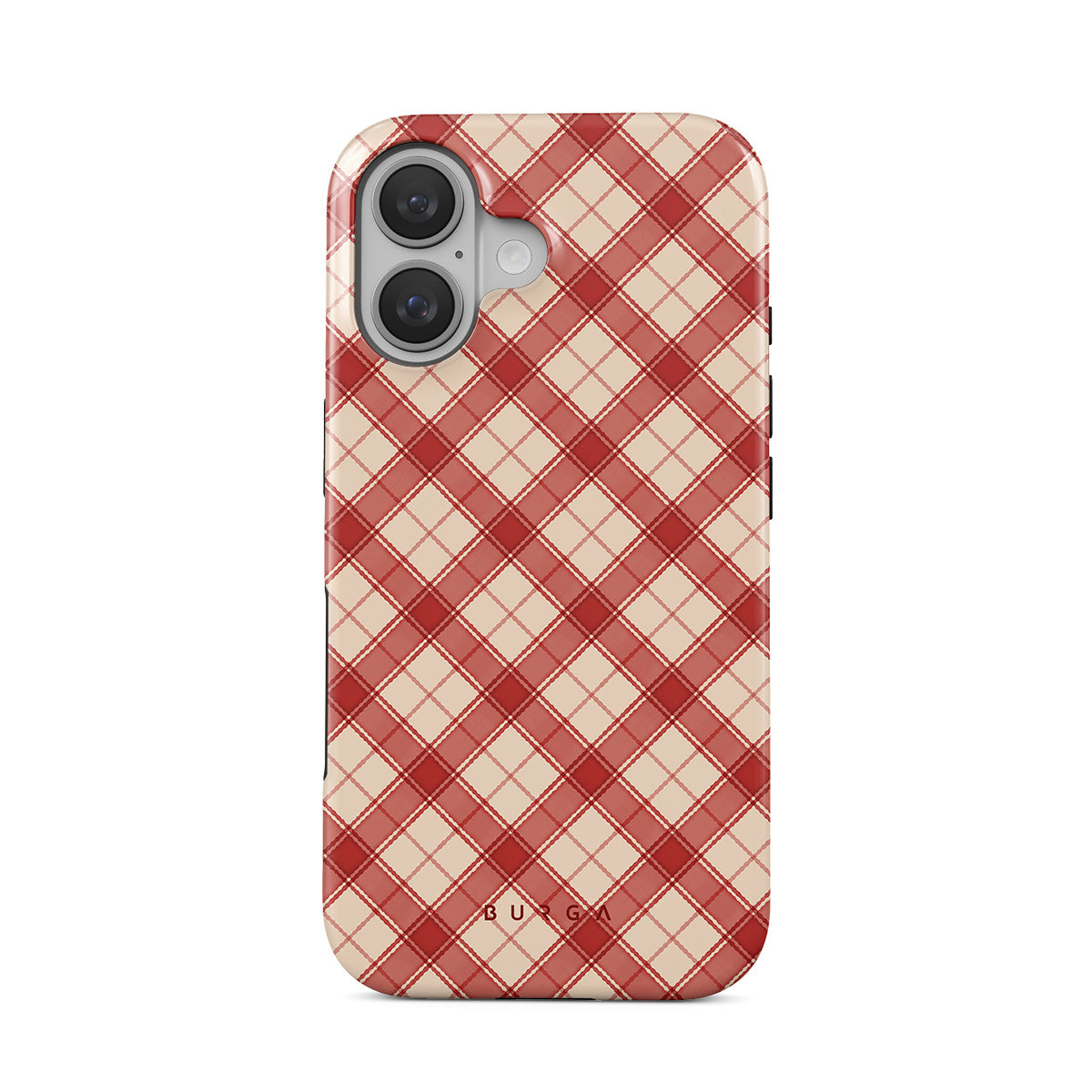 Kenmerken van dit design: rood en beige ruit, diagonaal ruitpatroon, klassiek tartan, buffalo check stijl, traditionele kerst ruit