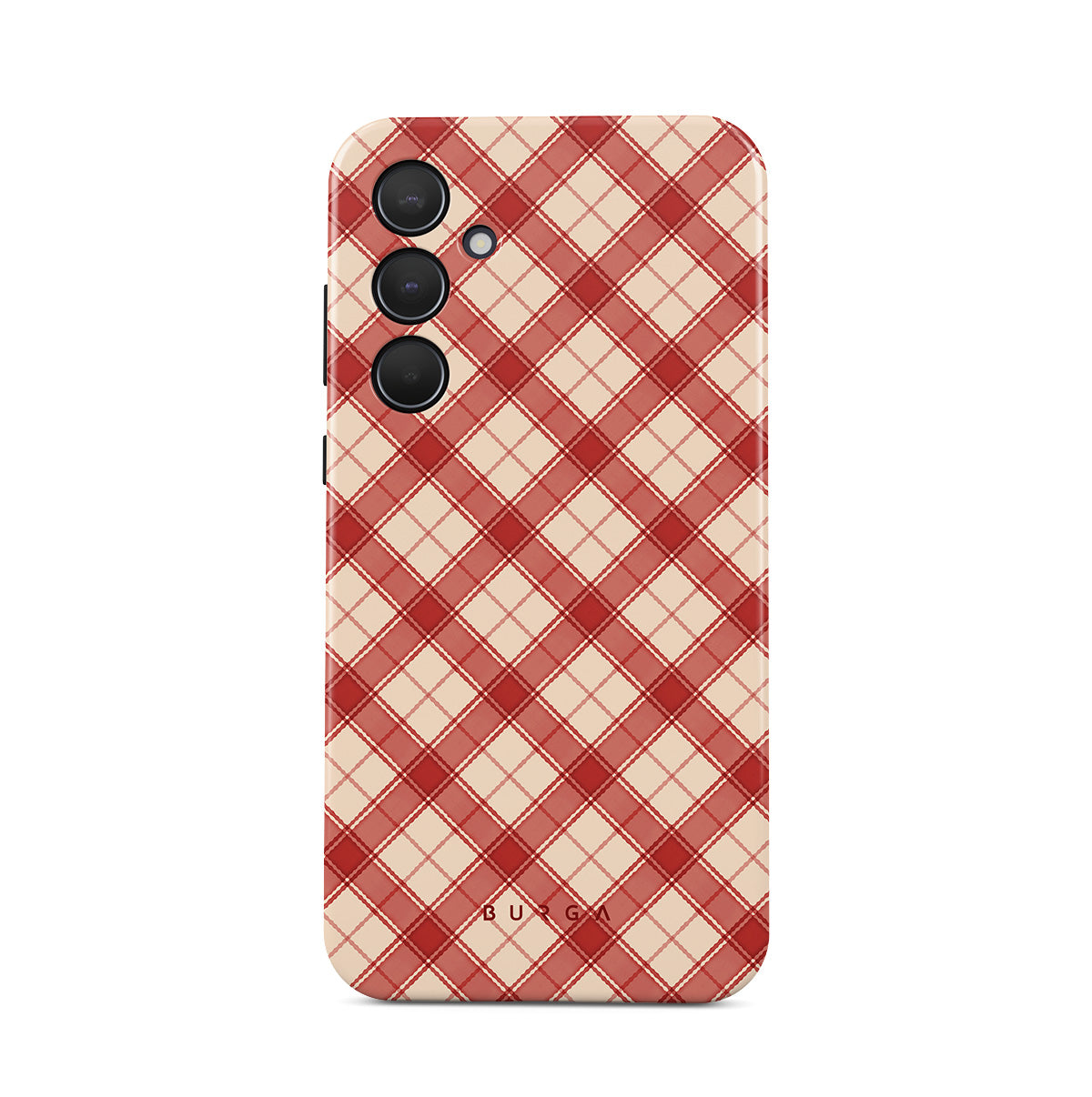 Kenmerken van dit design: rood en beige ruit, diagonaal ruitpatroon, klassiek tartan, buffalo check stijl, traditionele kerst ruit