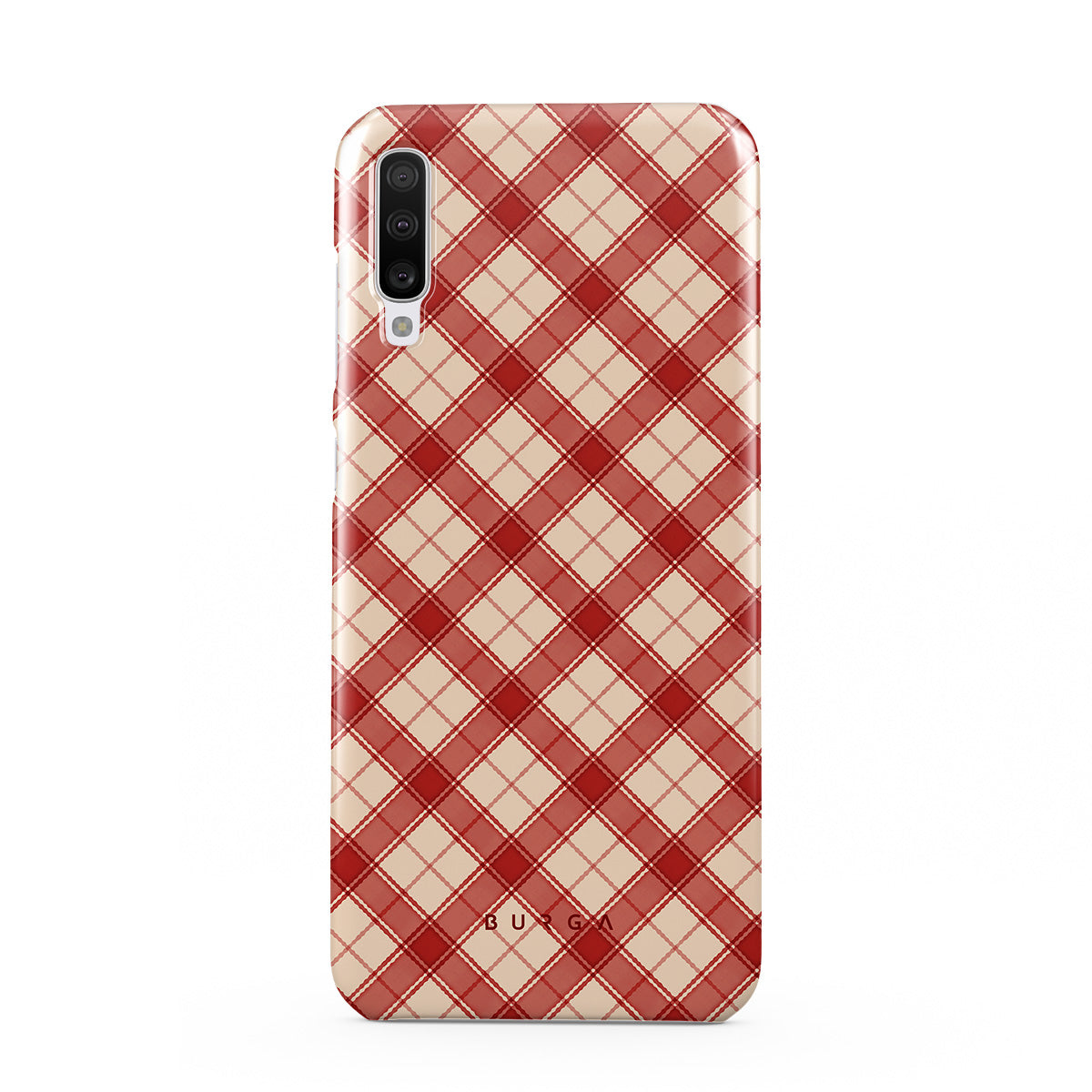 Kenmerken van dit design: rood en beige ruit, diagonaal ruitpatroon, klassiek tartan, buffalo check stijl, traditionele kerst ruit