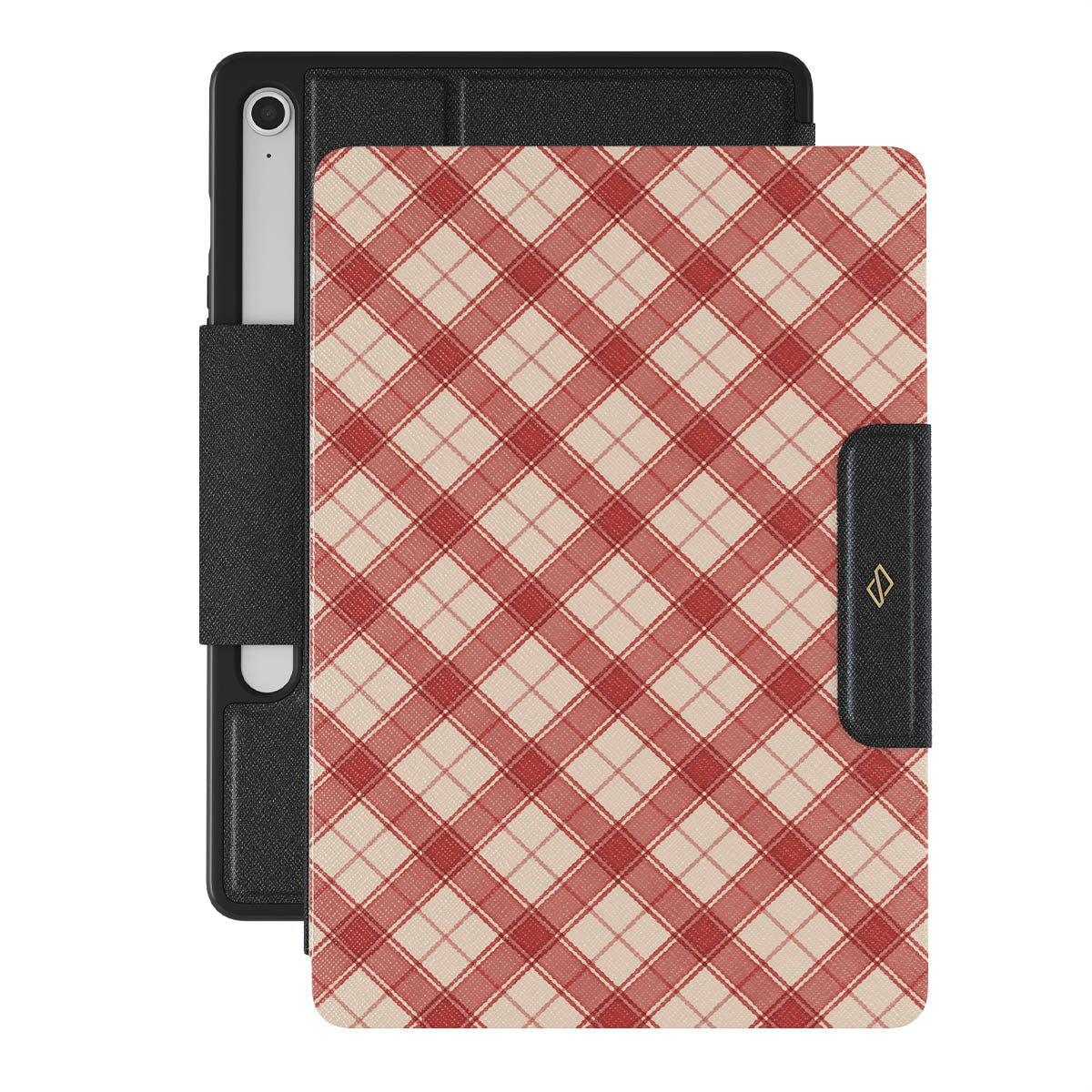 Kenmerken van dit design: rood en beige ruit, diagonaal ruitpatroon, klassiek tartan, buffalo check stijl, traditionele kerst ruit