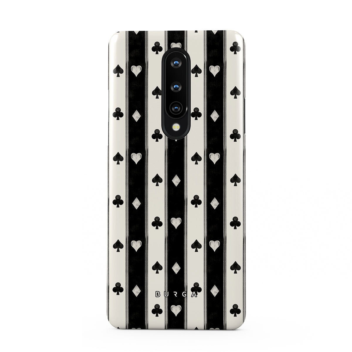 Kenmerken van dit design: zwart-witte strepen, harten, kaartspel symbolen, vintage stijl