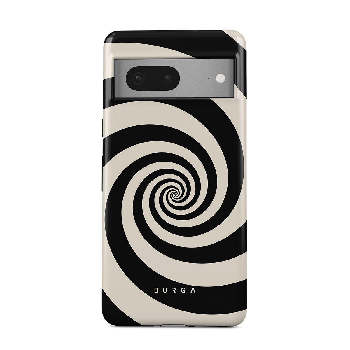 Kenmerken van dit design: zwart-witte spiraal, hypnotisch patroon