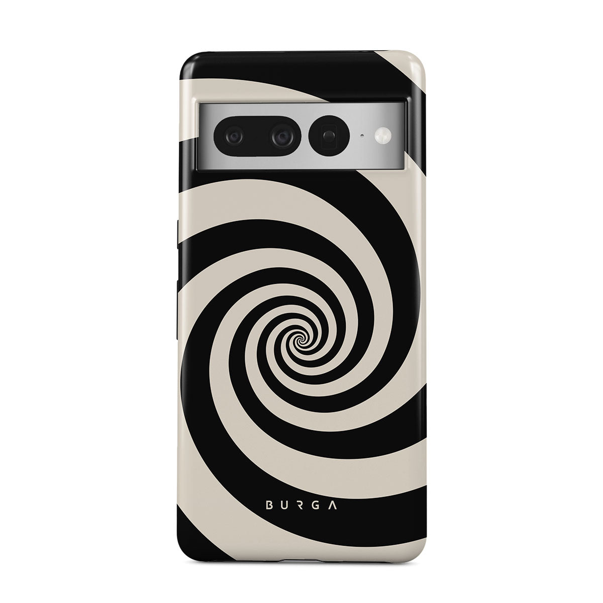 Kenmerken van dit design: zwart-witte spiraal, hypnotisch patroon
