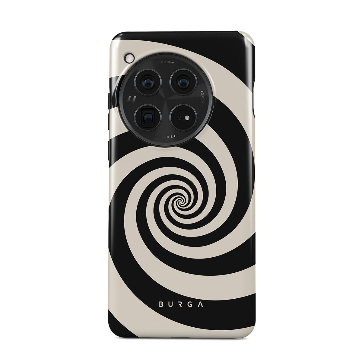 Kenmerken van dit design: zwart-witte spiraal, hypnotisch patroon